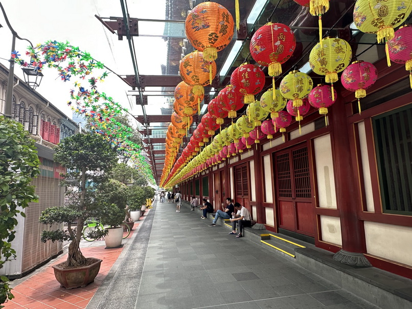 间。其他突出景点还包括僧伽文物博物馆,举办文化表演、讲座和播放电影的剧场。如果您想在牛车水的中心地带寻觅一处静谧的冥想沉思之地,此处五层楼带有宝塔和佛教转经筒的屋顶花园绝对是理想去处。